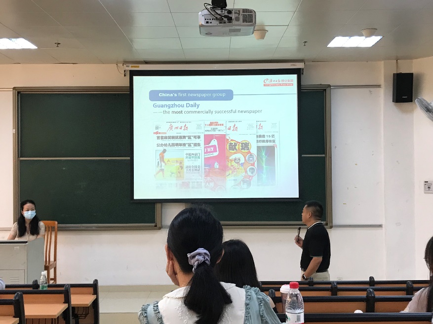 吕顺景首先给同学们介绍了广州日报报业集团的历史。广州日报报业集团,成立于1996年1月15日,是全国首家报业集团,也是全国版面规模最大、经济规模最大、经济效益最好的报业集团。
