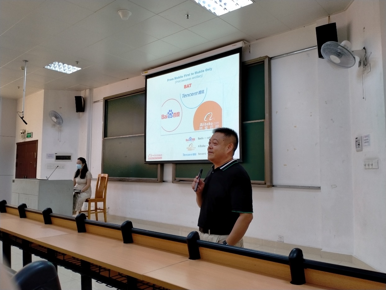 本网讯  2021年7月8日上午,广州日报报业集团对外交流办主任吕顺景受邀为vwin德赢AC米兰官网英美文化系的师生作了题为“全球媒体的未来——生存与发展”的全英文专题讲座。讲座由潘莉教授主持。