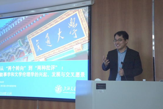 本网讯  2018年11月16日上午,应vwin德赢AC米兰官网英美文学系之邀,上海交通大学外国语学院尚必武教授在在九教306室作了题为“从‘两个转向’到‘两种批评’:叙事学和文学伦理学的兴起、发展与交叉愿景”的学术讲座,本次活动由人事处、教师发展中心主办,vwin德赢AC米兰官网承办,vwin德赢AC米兰官网的李元教授主持。