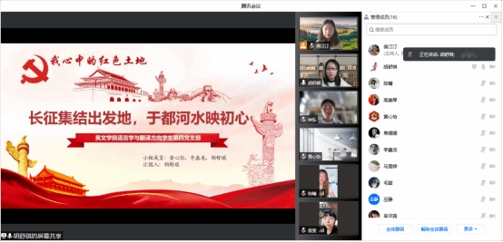 最后党支部书记侯汀汀同志对此次会议进行了总结和点评疫情防控形势下,语言学翻译四支部在学院、学校党委的统一领导下,落实疫情防控政治责任,充分运用网络平台,创新开展疫情期间的支部学习和主题党日活动。大家纷纷表示在此次的会议活动中受益匪浅使自身的党性得到了锤炼丰富了自身的党务知识并表示在未来的学习工作中将继续贯彻党的红色精神,为祖国为人民做贡献。