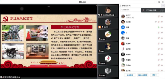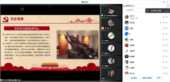 此次党日主题活动中,巫静同志向大家介绍自己家乡的红色土地:东江纵队纪念馆。东江纵队纪念馆,坐落在广东省惠州市博罗县罗浮山朱明洞区内,建于2003121日,抗日战争胜利60周年之际,其馆名为原全国政协副主席叶选平题写。巫静同志首先介绍了纪念馆内的展厅、历史照片和革命文物,东江纵队纪念馆中记录的一幅幅图片,展陈的一件件文物,既是东江纵队的历史见证,更是使人砥砺前行的力量源泉。