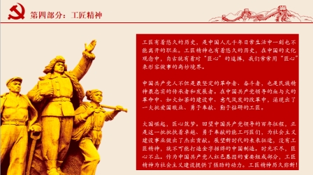 大国崛起,匠心筑梦。在“把一切献给党”的军工精神的感召下,包头市的军工企业中出现了一批批“大国工匠”、“北疆工匠”。翟心怡同志分享了军工之城中的工匠精神,她表示“作为中国共产党人红色基因的重要组成部分,工匠精神为社会主义建设提供了强劲的动力。工匠精神历久弥新!”随后,她介绍了卢仁峰同志,中国兵器工业集团首席焊接技师,先后荣获“中华技能大奖”、全国十大“最美职工”、中国“质量奖”等荣誉称号,并于2021年被评为“大国工匠年度人物”。卢仁峰同志身残志坚,自强不息,勇挑重担。正是无数像卢仁峰同志一样的大国工匠执着、坚守,对自己的工作和产品精雕细琢,用追求卓越的恒心锻铸专业,用精益求精的匠心雕琢国之重器,将工匠精神薪火相传,“中国梦”这张大美画卷才得以一帧帧变为现实。