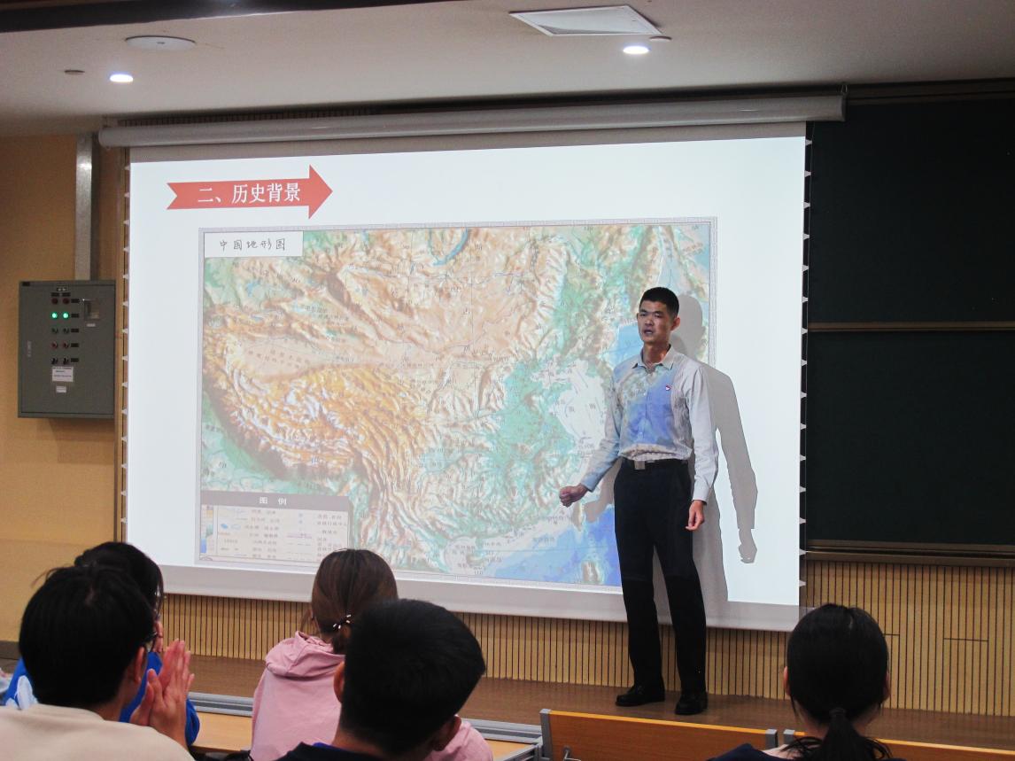 会上张冬同学以自身参军经历为引入,从他所在的连队背景为出发点,讲述了抗美援朝志愿军们与极寒天气作斗争、与敌人周旋、誓死抗争的英雄事迹,打动了现场的许多观众,使现场同学深刻感受到抗美援朝对于新中国在国际上站稳脚跟的重大意义。他又通过对比国际实力、分析地势优劣、考证各方态度等多个角度说明抗美援朝战争“必须打,并且一定得打赢。”最后,他呼吁各位同学,要传承和发扬伟大的抗美援朝精神,对于国家和民族要怀有深切的责任感和使命感;我们要缅怀先烈,吾辈当自强。