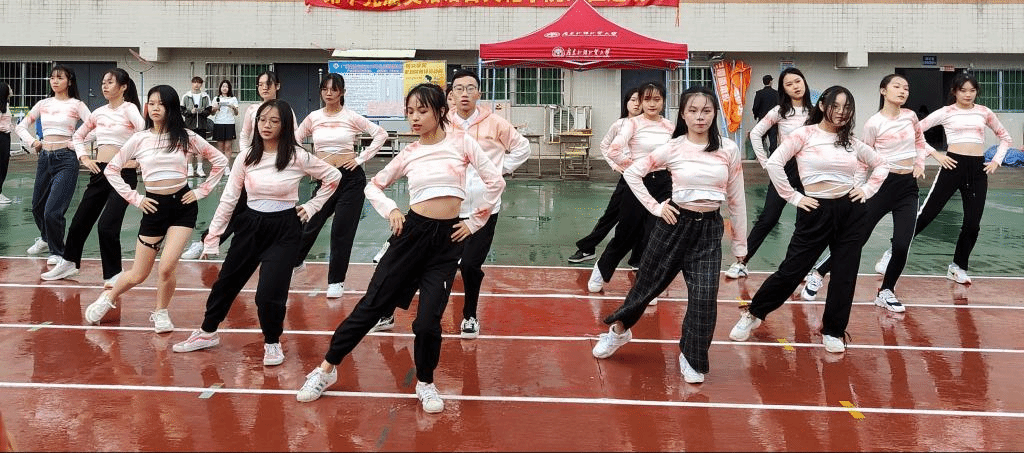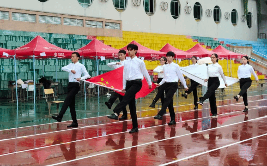 开幕式过程中,尽管天空中飘着毛毛细雨,同学们仍精神饱满,热情不减。国旗队整齐进场,护旗手们昂首挺胸,步伐矫健地护送国旗、院旗进入田径场,同学们共唱国歌与校歌。各班的方阵表演体现了同学们的飒爽英姿,有力的步伐彰显同学们必胜的信念。院舞队同学也进行了舞蹈表演,他们的舞蹈动感潇洒,活力十足,点燃了全场的气氛。