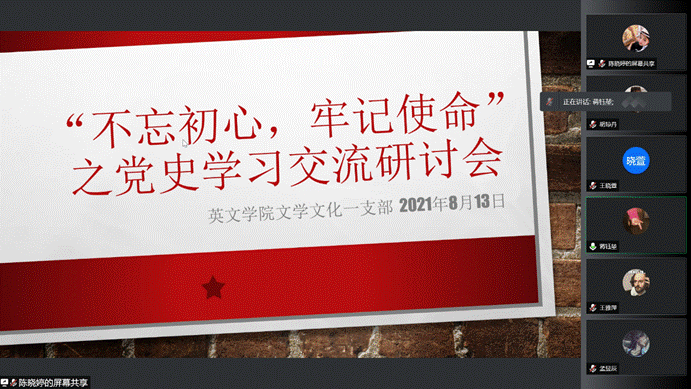 本网讯 “历史是最好的教科书,历史是最好的老师。”为继续深化党支部党史学习教育,激励支部党员学党史、悟思想、办实事、开新局,8月13日上午,vwin德赢AC米兰官网文学和文化方向学生第一党支部通过腾讯会议平台成功举办了《中国共产党简史》专题学习交流会。本次会议由支部书记陈晓婷主持,全体党员线上参与了本次活动并进行研讨交流,分享学习感想和收获。