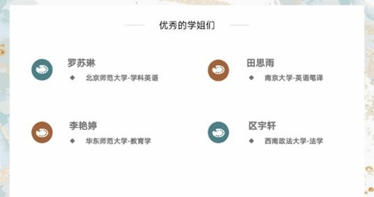 罗苏琳从择校原因、 时间管理、各科复习建议、心态调节等因素进行分享。首先是择校原因,罗苏琳师姐称应结合自身情况从地区、真题风格、职业方向、报录比、学校知名度等方面进行分析;其次是时间管理和各科复习建议方面,罗苏琳师姐分享了自身在暑假和在校时期的具体时间段安排和各科不同时间段的复习建议;最后罗苏琳师姐就心态调整、效率提升、复试准备方面进行分享。
