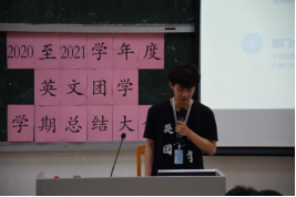 英文团学轮值主席王桂鸿代表轮值主席团进行工作汇报总结