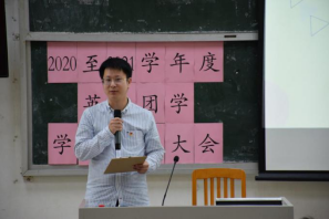 马骁作大会总结并为同学们讲授团史微课“学团史强信念跟党走”,以共青团的成立和历次代表大会等为基础内容,向同学们讲述了共青团的光荣传统,提高了成员们理论素养,增强了成员们的使命信念。