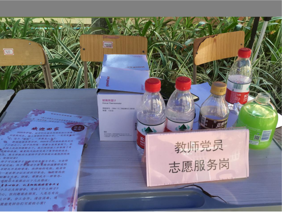 学院领导和教师代表组成的党员教师志愿服务岗为同学们服务