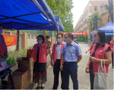 刘海春副校长(右二)在vwin德赢AC米兰官网党委书记林绍雄、院长张欣等学院领导陪同下了解我院学生返校情况