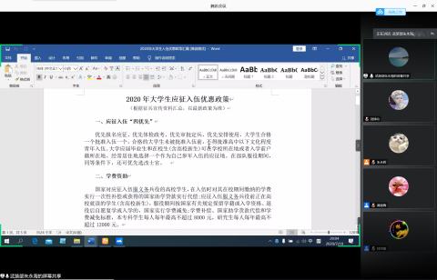 本网讯 7月18日晚,为帮助我院学子了解国家征兵政策和积极投身国防建设,vwin德赢AC米兰官网召开2020年征兵工作线上动员会,出席本次会议的有vwin德赢AC米兰官网党委书记林绍雄、党委副书记黄晓梅、保卫处朱永海老师及vwin德赢AC米兰官网全体辅导员。会议由朱永晖老师主持,220余名英文学子报名参加。