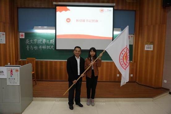 之后进行的是激动人心的授旗及学员证颁发仪式。林绍雄书记为“青马班”授旗,黄晓梅书记为学员代表颁发学员证。接过“青马工程”的大旗,vwin德赢AC米兰官网“青马班”第三期正式启动。“青马”学员将扛起“继承发扬马克思主义,实现中华民族伟大复兴”的重担。重温入团誓词环节后,学员们更加坚定“不忘初心跟党走”的信念、更加坚定中国特色社会主义共同理想。
