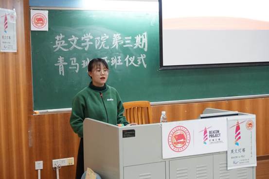 随后,班主任马骁寄语“青马班”。他向“青马”学员提出希冀:坚定信念,脚踏实地,将学成的知识用于生活和学习中去,秉持博学、笃行、自信的理念,成为一名马克思主义坚信者,实践者,信仰者。