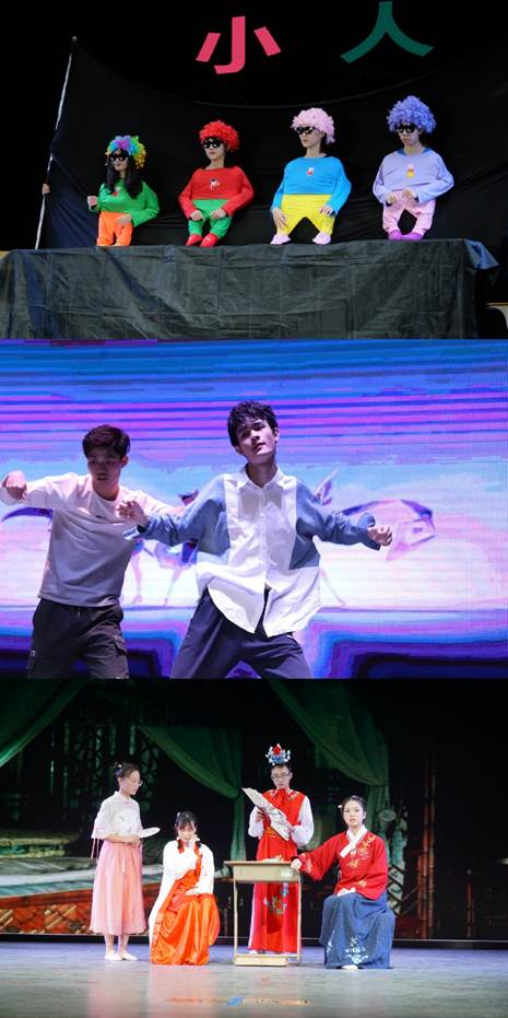 抽奖环节过后,晚会进入第二部分。1904班带来别出心裁的小人舞表演,配合默契,引发了观众的阵阵笑声。18级和19级联合带来的舞蹈串烧《Eventually》把晚会推向高潮,跃动的舞姿惹得台下欢呼连连。院话剧队带来了奇思妙想的话剧《红楼奇事》,大开脑洞,演绎当网购遇上红楼梦碰撞出的别样火花。