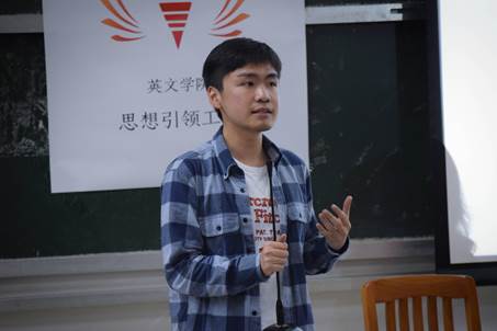 现场播放了“凤鸣广外”表彰大会视频,来自不同学院的国奖获得者分享了自己的学习经历和得奖感悟。随后我院国奖获得者进行经验分享。时艺菲。她围绕自己“人生不设限”的信条,讲述自己如何突破边界、挑战自我以及在实践中历练成长的精彩大学生活。林菁认为大学期间要对自己很严格约束,努力克服懒散,重视时间管理,他还通过翻译案例,鼓励同学们多思、多积累,在模仿、细节以及提问中学习。正在境外交换学习的1601班易仙菊以视频的形式跟大家分享了她 “脚踏实地”的学习经历,并强调了个人规划的重要性。