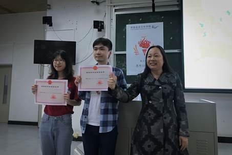 活动开始,黄晓梅书记进行致辞。她对获得上学年国家奖学金的同学以及获得其他各项学业奖学金、社会奖学金和获评先进的班集体表示了祝贺。她也对同学们的学习生活提出几点希望:第一,要尊敬理想信念,做时代新人,在思想和行动上与党中央保持高度一致;第二,让优秀成为一种习惯,给自己设定目标,不断努力;第三,希望同学们在学风建设年中遵守学校的各项规章制度,加强自我管理。她鼓励同学们,以vwin德赢AC米兰官网为荣,为英文争光,向榜样学习,努力进步,黄晓梅书记为国家奖学金获得者1701班时艺菲及 1503班林菁颁奖。