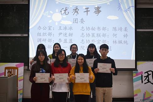 大会还进行了“团学之星”颁奖仪式,对各部门在上学期活动和工作中表现优秀的干部、干事进行表彰。