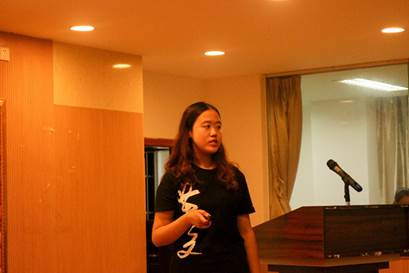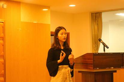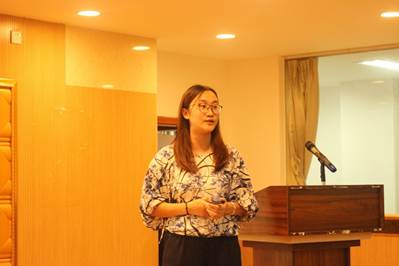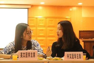 林秀燕介绍了中文学院学生会的组织架构以及各部门职能,展示了中文团学开展的一系列具有中文专业特色的活动,以及于今年4月首次开展的文学鉴赏大赛。林秀燕提到,在日常管理中,今年中文团学创新性地增加了考勤管理的职能。