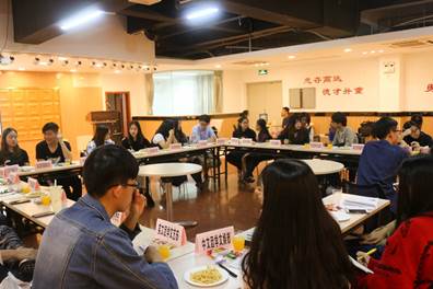 在两学院主席团代表介绍学院团学工作情况后,两学院团学主席团和各部门主要负责人进行自由交流。职能相近部门的主要负责人相邻而坐,畅谈团学工作心得,分享工作经验。