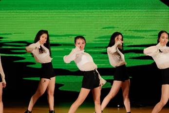 有趣的中场游戏结束后,晚会进入到第二部分。院模特队和院歌队联手带来“广外维密秀”——Tik Tok。黑白方块闪烁的炫酷舞台、踩着“Tik Tok”节奏的音符和步伐结合在一起为观众带来了一场视听盛宴。1812班带来的话剧《Youth Return》,融合舞蹈元素,用轻松愉快的方式讲述梦想与现实冲突的沉重,强调坚持梦想的重要性。随后,院舞队带来激情四射的舞蹈——Me, Myself & I,院歌队带来文艺的歌曲串烧《Time Traveler》,全场气氛高涨