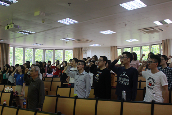 大会伊始,全体党员齐唱校歌,王栋作为领誓人带领场内所有毕业生党员重温入党誓词。