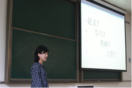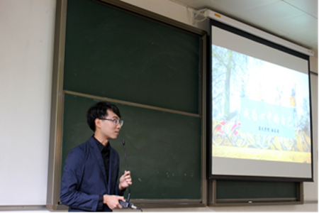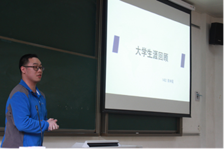最后进行分享的是来自高翻1402班的陈坤昊,题目“大学生涯回顾”看似简单朴素,却也道出了即将大学毕业的他此时的心理状态。他着重讲述了参加外交部选派前往美国学习和考试的过程,分享了自己在各个阶段的学习和心得。在整个宣讲过程中,陈坤昊通过叙述自己在大学时的经历,分享了自己的做法和建议,使同学们获益良多。