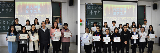 为表彰先进工作积极分子,英文团学为上半学年工作表现突出的29位优秀干部、干事授予“团学之星”荣誉称号,大会现场,由党委副书记何伟儒、校学生会副主席林宗维为获奖同学颁奖。