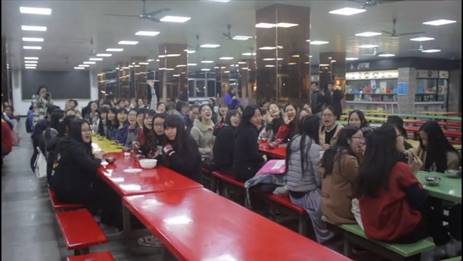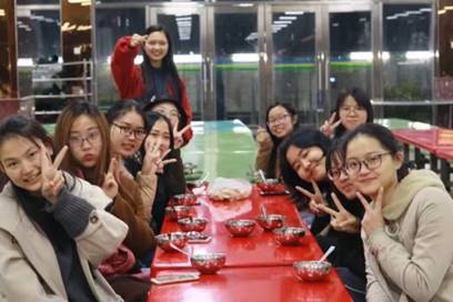 欢声笑语、热闹气氛、暖暖情谊……温暖温馨的话语,都赶集似的跑出来了。年级同学围坐一起,在浓浓节日氛围中提前感受集体过冬至的热闹气氛和暖暖情谊,在紧张的期末考试备战状态中得到放松。