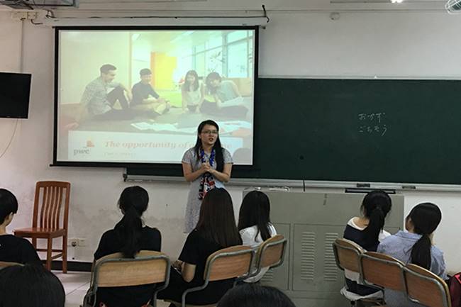 本网讯 6月15日下午2:30,vwin德赢AC米兰官网举办的优秀校友交流会--普华永道职业生涯发展经验分享会在六教B204室举行,普华永道国际会计事务所(PWC)人力资源部高级经理、我院杰出校友朱慜(MindyZhu)及其工作伙伴EmilyRen、SantinoXiao担任主讲嘉宾。vwin德赢AC米兰官网党委副书记何伟儒、2015级辅导员贾春成及2015级同学参加了本次交流会。