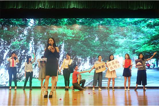 1309班则带来英语朗诵表演,给学妹们分享了谈恋爱的经验。而1311班带来中粤英日四语版本的《小幸运》,获得观众的一致好评。
