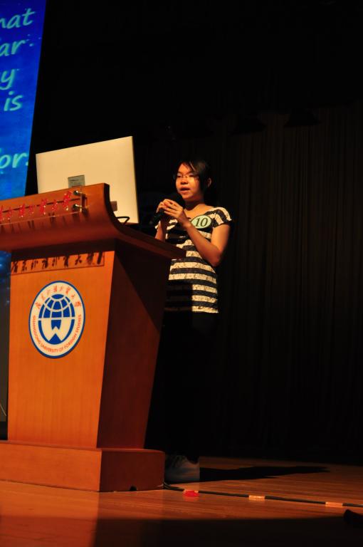 本次大赛的个人独白环节分两轮进行,该环节采取了随机摇号的形式,从十三个班级中每轮各抽取一位同学上台朗诵个人独白。朗诵的材料与往届比赛相同依旧分成英音和美音两种,或为严肃的英国领导人发言或为幽默风趣的美式演讲,选手可自行选择。即使是在这种紧张的气氛之下,大部分被抽中的选手都仍然胸有成竹,从容自若地在舞台上完成独白。虽然有个别选手略显紧张,但最终他们都在朗读的过程中渐渐地克服了紧张感,顺利地完成了独白。其中,来自1502班的姚敏同学以流畅的朗诵、标准的发音、对原文语调到位的模仿,赢得了在场评委们的认可,斩获个人独白一等奖。