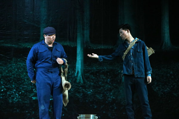 紧接着的第一剧组《人与鼠》,讲述了人们在无助的时代,居无定所,一贫如洗,像失了窝的老鼠四处流浪。莱尼和乔治来到一个小镇,靠体力劳动为生。他们幸运地与一位老人共同追梦,却被吝啬的农场主无尽压榨。逼真的道具仿佛再现了工人们辛苦劳作的场景。当不受控制的巨力,遇上了莱尼痴人的智慧,乔治会作出什么令人不可思议的决定?