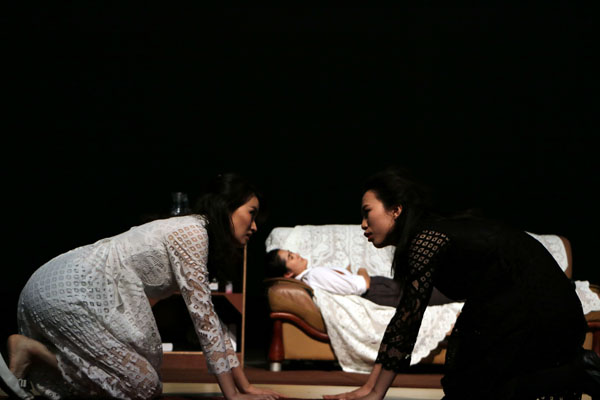 接下来是第三剧组的《长昼安魂曲》,选自尤金·奥尼尔的最后一部作品。是什么使当初一笑倾城,仪态大方的玛丽病骨支离、草木皆兵?黑白玛丽,亦真亦假,她们又会吹响怎样的诡异的安魂曲?这个由兴至衰的家族的未来将何去何从?剧组成员将带领观众一同聆听这昼夜的悲鸣。