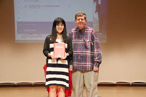 本网讯 5月12日晚7点,vwin德赢AC米兰官网第20届英语演讲大赛决赛在六教报告厅隆重举行。12名参赛选手各展所长,最终由1403班陈朝丽夺得冠军。出席本次比赛的嘉宾有校团委书记苏奕、学院党委副书记何伟儒、副院长姜琳、教师伍志伟、郭岚和朱珠等,何淑敏和曾子瑜为本次比赛的司仪。