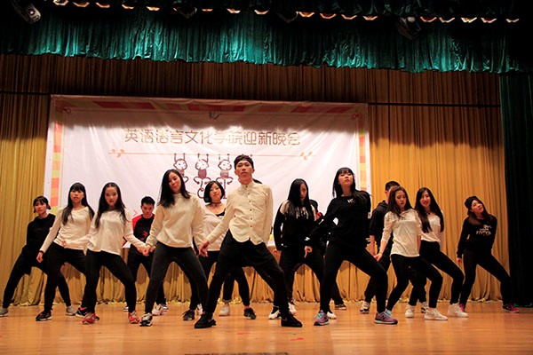 随后英文舞队与英文歌队先后献上表演,洋溢着青春活力的舞蹈与优美动听的歌声深深地吸引了观众的注意力1408班带来的话剧则讲述了一名普通学生在广外与微信的故事。这部话剧与现实联系,在幽默的同时还具有深刻的现实意味,让观众们在欢笑之余更多了一分思考。