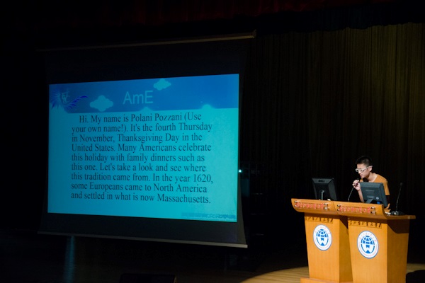 在独白素材的选择中,英音和美音素材都偏向于主持风格,而美音的素材因其用词简单且语言自由备受青睐。当然也有选手挑战难度较大、发音要求较高的英音素材。大部分选手都能较好地掌握和运用语音的重音、节奏、停顿、连读和升降调等技巧,但也有些选手因为紧张以及缺乏练习等因素而发挥失常。其中,1213班的朱悦菡因独白流利,发音标准清晰和感情投入而脱颖而出,勇夺个人独白一等奖。