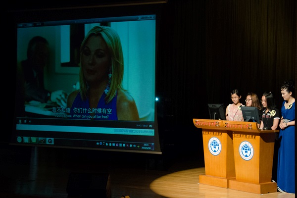 首先登场的是1212班A组的《Becoming Jane》,虽然是第一个登台,但4位女生毫不怯场。Jane的母亲的配音员语音沉稳,语气逼人,将母亲的逼迫和命令表现得淋漓尽致。同时Jane的配音员适当地把握了语调的轻重缓急,完美展现了Jane的反抗和执着的个性。两种“力量”的碰撞,时刻牵动观众的心。随后出场的是1202班的《Sex and the City》。四名配音员用各具特色的美音表现电影里“四个年过五十的女人”的不同性格特点。Samantha的配音员陈希沉着冷静,气场强大,同时将Samantha的外向性格表现到位,最终凭借精湛的美音斩获最佳女配音奖项。