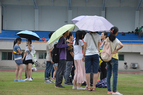 中场休息,在留学生球队缺少饮用水的情况下,英文球员们主动与对手分享,体现了“友谊第一”的体育精神。