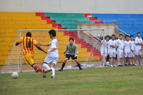 本网讯 5月14日下午五点,广外杯足球四强赛在北校足球场开赛。在与留学生学院足球队的比拼中,英文男足顶住压力,坚强防守,但在对手猛烈的攻击下,最终以0:2的成绩铩羽而归。