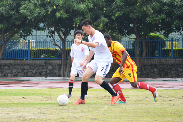 裁判哨响,比赛结束。英文男足以0:2的成绩憾负留学生球队,进入广外杯足球赛三、四名争夺赛。