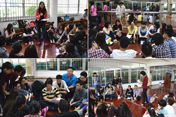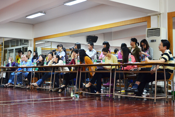 初次公开演出,各剧组只是带上简单的道具和桌椅,不带妆演出。各个剧组也自行带上录像设备,录下本剧组的整个演出过程。从本次彩排来看,四个剧组的演员及配音都表现较好,尽力展示了一个多月以来的排练效果。在四个剧组完成表演之后,各个剧组的指导老师又分别对其负责的剧组一一进行了点评。