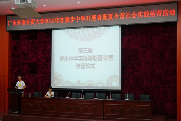 本网讯  20150801日,广东外语外贸大学vwin德赢AC米兰官网三下乡GTL3.0英语夏令营活动在结营仪式中落下帷幕,至此,在寮步中学为期七天的教学实践活动正式结束。