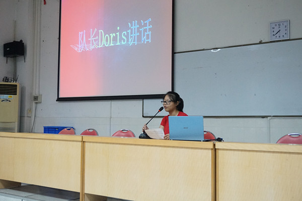 接下来,是Firefly5.0队长董佩琪的发言。她幽默风趣的言语引来阵阵笑声,活跃了气氛,让学生们对之后的夏令营生活充满期待。