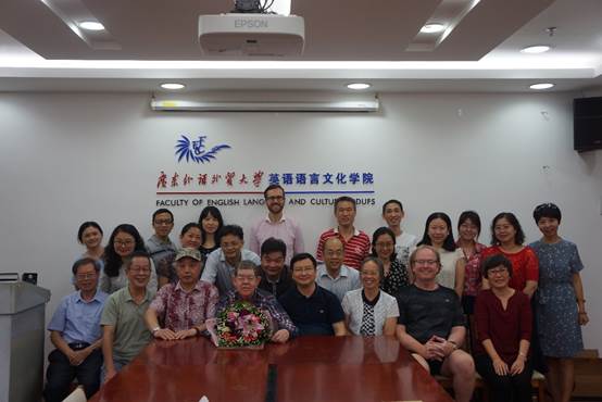 随着老师们的陆续到来,欢送会正式开始了。Richard回忆了自己在中国的生活。他说自己在中国生活了二十几年,其中整整十八年都是在广外度过的。对广外,Richard一直怀着深厚的情感,因为这里有他多年的老友,也有他可爱的学生。Richard还一直对中国的日新月异的变化感到惊奇,尤其是在移动支付这一方面。他还开玩笑似的感叹自己已经赶不上时代的变化。