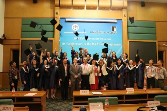 庆典的最后一个议程是学位授予仪式。利兹校长Alan Langlands为第十届项目毕业生授予硕士学位,并与项目全体师生一同合照留念。随着毕业生们把硕士帽高高抛起,广外-利兹项目十周年庆典圆满结束。