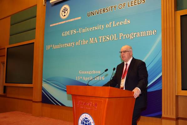 接下来,教师代表利兹博士导师Martin Wedell阐述了此项目区别于其他国际合作项目的重要两点:一是广外与利兹大学优势互补;二是该项目配备了经验丰富的教师团队。