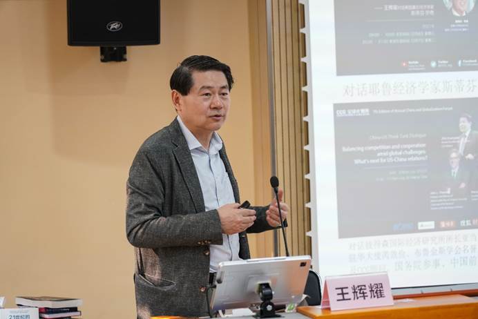 报告会上,王辉耀以“当今世界正经历百年未有之大变局,我国正处于实现中华民族伟大复兴的关键时期。”与CCG2020年来的名家谈话引出思考“我们熟悉的全球化去哪里了?”。接着介绍全球化的概念以及全球化进入发展新阶段与面临的危机。王辉耀校友表示当前全球化发展进入新阶段,中国作为经济全球化的重要推动者也迎来发展的新机遇,参与并推动全球化发展路路径并提出中国推动全球化发展路径建议。