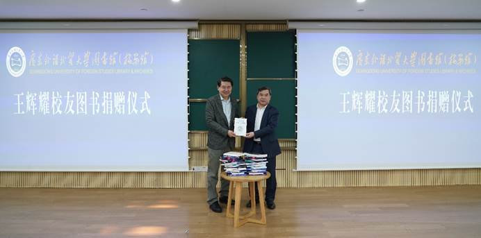 图书捐赠仪式(右:焦方太,左:王辉耀)