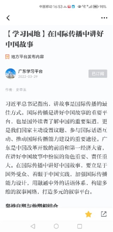 (史老师撰写的《在国际传播中 讲好中国故事》被学习强国平台全文转载)