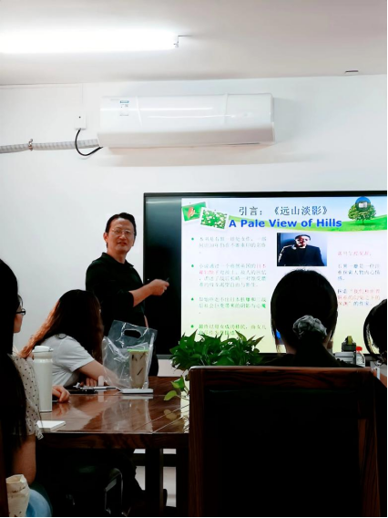 然后,管教授着重分析《远山淡影》中暗恐所呈现的“否定性”美学特征。在介绍阿多诺的否定性辩证法后,管教授强调艺术应该表现那些丑的,否定性的,负面的内容,而这些丑的内容是以内在的美丑相互相互连接的方式获得它的审美意义的,现代艺术对抗异化社会只能以更为激进的“反艺术”的面目出现。管教授用文本分析法阐述了“核爆”之于人的心理影响及日本战后的历史社会语境,重点强调艺术的救赎性功能,帮助读者驱逐心灵世界中的阴霾,重建那些给予我们精神支撑的价值,让人们远离战争,珍重传统中的温情,迎接充满阳光的日子。
